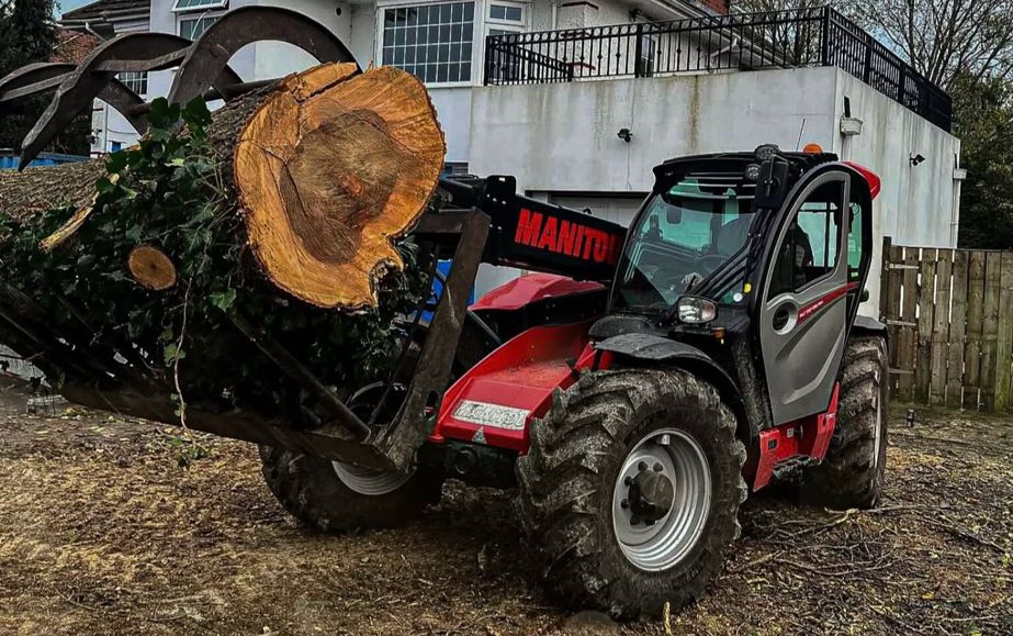 On larger tree dismantles and clearance projects, safe timber handling is essential. Our Manitou telehandler allows us to lift and move substantial sections with accuracy and control.